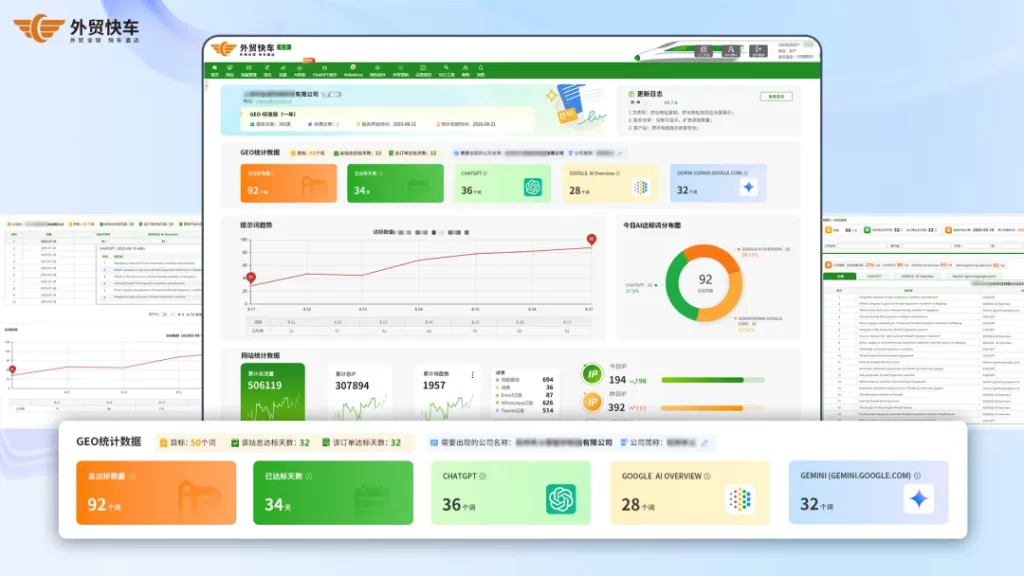 敏锐捕捉到行业趋势变化后,思亿欧外贸快车快速布局,研发推出独立站出海“双擎并行”解决方案——既守住传统搜索流量阵地,更主动抢占新兴“AI答案经济”风口。在持续提升SEO(搜索引擎优化)技术、稳固核心流量的基础上,创新应用GEO(生成式引擎优化)技术,通过系统化梳理企业网站内容结构、优化语义表达,让企业信息更易被ChatGPT、Google AI Overview、Gemini、Google AI Mode等海外主流大模型“读懂、认可”,并作为权威答案呈现给提问用户,从而实现海外用户直接提问场景下的高频曝光。